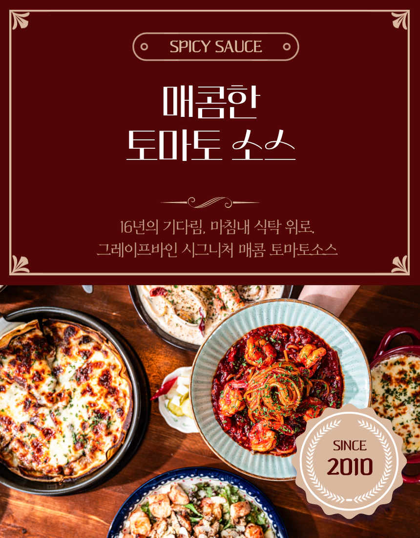 그레이프바인 매콤 토마토소스의 진가는 오랜 시간 매장에서