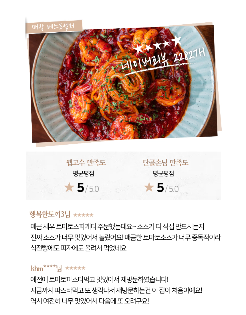 매콤한 토마토소스가 너무 중독적이라 식전 빵에도 피자에도 올려서 먹었네요.""예전에 토마토파스타 먹고 맛있어서 재방문하였습니다! 지금까지 파스타 먹고 또 생각나서 재방문하는 건